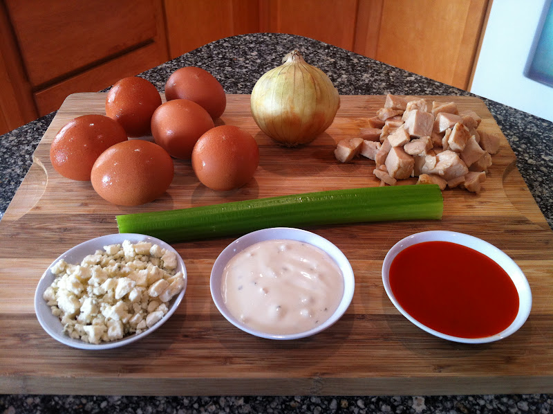 - Peel the eggs and slice in half lengthwise. Scrape the yolks out into a large mixing bowl. To the bowl add the rest of the ingredients except for the onion. Use a microplane to grate the onion over the bowl. The juice from the onion will add a lot of flavor to the mixture.
