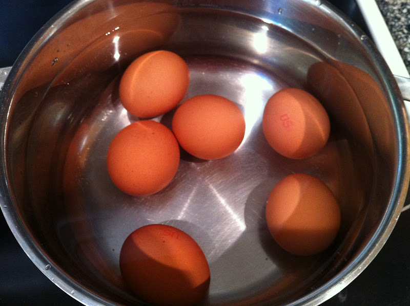- 6 large eggs, hard boiled