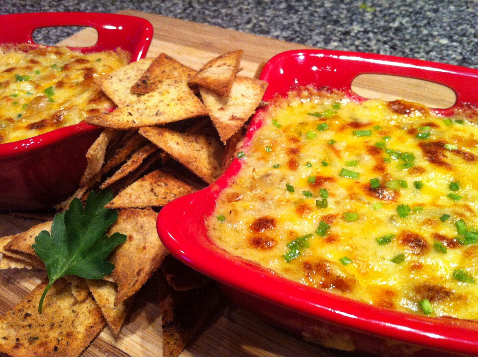 This dip is super easy to prepare and oh so delicious. It is sure to be the first dish empty at any gathering you bring it to. Although, I must confess my husband and I ate it for dinner. I served it with these Garlic-Parmesan Baked Tortilla Chips Enjoy!!