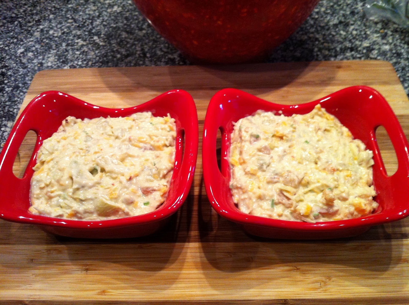 I chose to bake these in two 10 oz. Au Gratin baking dishes but you can choose any baking dish you desire.