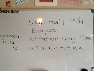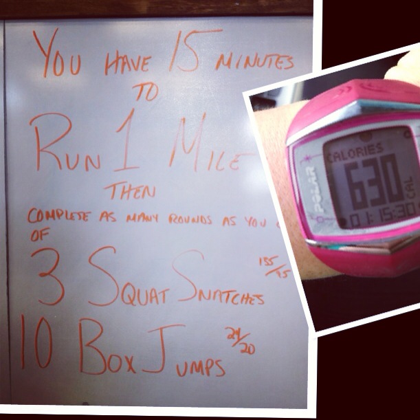 Today the workout was - In 15 minutes, run 1 mile and then for the remainder of the time complete as many rounds as you can of 3 Squat Snatches and 10 Box Jumps. I made it through, but it was definitely not even close to a good performance. I was way more tired after the mile than I should have been and my form on the squat snatches was pretty terrible. After the first set of box jumps, I switched to step-ups. My legs just felt like cement. NOT a good day in the gym. BUT, it was still better than not going at all. I did my mile in 10:04 and then did 3 full rounds plus 2 squat snatches.