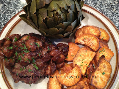 I made this beautiful salad to go with our dinner tonight. It had romaine, spinach, kalamata olives, capers, roasted red peppers, roasted eggplant, roasted artichokes and pepperoncinis. I had a hard time verifying that pepperoncinis were a compliant food. I saw a lot of mixed answers. However, according to the ingredient list on the jar, it all looked compliant to me.