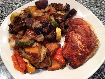 We eat a ton of roasted vegetables. We always have. Tonight I prepped up two large trays. They will probably be gone tomorrow just between the two of us. Tomorrow is our last day and I feel pretty damn good. I've read a lot of labels, learned a lot about food and about my own body. Now that it is almost over, it feels as though it has gone by really fast. I'm looking forward to implementing much of what I have learned into my daily routine.