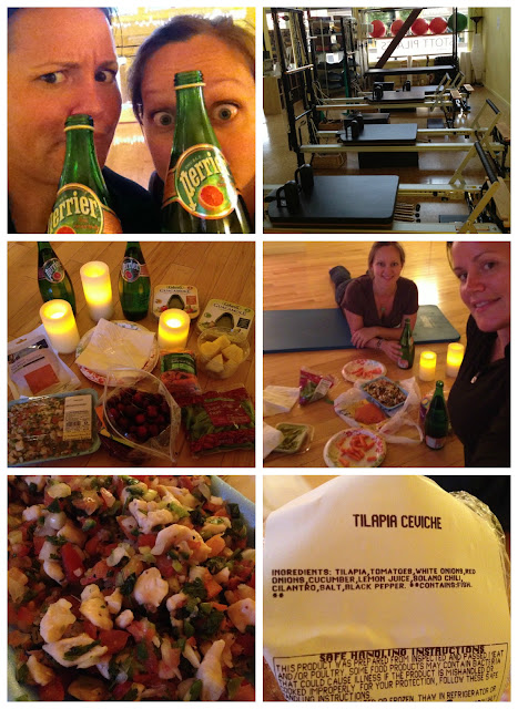 Any of you who have done a Whole30 already know how hard it can be to dine out. It is possible, but not without asking a lot of questions and requesting a lot of modifications. Even then, you really don't know what you are getting since you weren't there when it was prepared. My friend and I wanted to go out to dinner tonight and after having to get up and leave one place, another being closed, and looking at a series of menus online, we ended up spending about 30 minutes in the grocery store, reading labels and grabbing random foods. We ended up taking all the food back to the Pilates studio she works at. We spread out our bounty on the floor of the studio and had what turned out to be one of the best date nights ever. We managed to find a Whole30 compliant smoked salmon (which I was sure did not exist), a tilapia ceviche, guacamole, carrots, snap peas, pineapple, cherries, and sparkling mineral water. It was a great night.